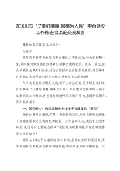 在XX市“辽事好商量,聊事为人民”平台建设工作推进会上的交流发言