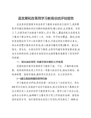县发展和改革局学习教育总结评估报告在县委的坚强领导和县委学习教育专班的有力指导下,我局聚焦作风建设领域的突出问题和短板弱项,精心组织,扎实推进。全局上下,从领导班子到普通干部职工,共计75人,覆盖局机关各股室及下属3个事业单位,实现了人员、内容、环节的全覆盖。期间,共组织党组理论学习中心组专题学习8次,开展全局性专题研讨4次,举办各类警示教育活动5场,深入排查并整改问题28项。通过系统化、常态化、长效化的学习教育,全局作风建设取得显著成效,政治生态持续向好,为推动全县经济社会高质量发展提供了坚实的作风保障。一、强化组织领导,构建齐抓共管的工作格局坚强的组织领导是确保学习教育不虚、不空、不偏的根...