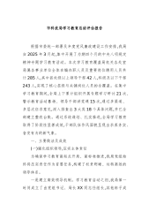 市水利局学习教育总结评估报告根据市委、市委组织部关于深入开展中央八项规定精神学习教育的统一部署及年度党建工作要点,我局党组将此项工作作为锤炼干部党性、优化政治生态、提升履职能力的重大政治任务。学习教育自2025年3月启动,至7月底集中阶段结束,历时五个月,实现了对局机关、局属各事业单位共812名在职干部职工的全覆盖,重点聚焦处级以上领导干部、关键岗位负责人和青年骨干。期间,全局上下共组织开展党组理论学习中心组专题学习15次,举办专题研讨会4场,开展警示教育活动6次,各级党组织累计查摆梳理出4大类125项问题,并制定了详实的整改清单。通过系统性、多层次、全覆盖的推进,本次学习教育取得了扎实成效,...