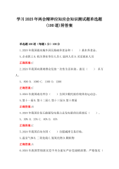 学习2025年全国“两会”精神应知应会知识测试题(300题)两套附答案供参考学习2025年两会精神应知应会知识测试题单选题(100道)附答案单选题100道(每题1分)100分1.2024年我国提高城乡居民基础养老金和()基本养老金。A.企业职工B.机关事业单位人员C.退休人员D.灵活就业人员正确答案:C2.2024年我国向困难群众发放一次性生活补助,惠及()多万人。A.800B.1000C.1100D.1200正确答案:C3.2024年我国成功举办()全国少数民族传统体育运动会。A.第十一届B.第十二届C.第十三届D.第十四届正确答案:B4.2024年我国非化石能源发电量占总发电量的比重接近(...