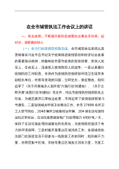 在全市城管执法工作会议上的讲话.