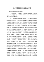 在全市城管执法工作会议上的讲话一、肯定成绩,不断提升新阶段城管执法事业开好局、起好步、谋新篇的信心(一)全力打好疫情防控阻击战。全市城管执法系统认真贯彻落实习近平总书记关于统筹推进疫情防控和经济社会发展的重要指示精神,积极响应市委市政府的安排部署,坚持人民至上、生命至上,迅速投入疫情防控人民战争。一是认真履行疫情防控工作职责。市局作为疫情防控指挥部环境卫生组常务副组长单位,对督导发现的问题,立即交办,督促整改。组织起草了《关于开展城乡人居环境“六项行动”的通知》、《关于立即开展“凌晨行动”的通知》等文件,均以市疫情防控指挥部名义印发。为规范废弃口罩收运处置,市局起草了疫情指挥部第5号通告。二是...
