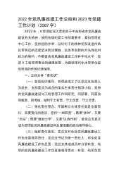 2022年党风廉政建设工作总结和2023年党建工作计划