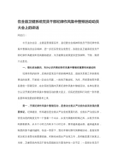 在全县卫健系统党员干部纪律作风集中整顿活动动员大会上的讲话同志们:今天这次会议,主要是贯彻落实市、县纪委全会精神和党员干部纪律作风集中整顿动员会议精神,进一步压实管党治党责任,加强全县卫健系统党员干部纪律作风建设和党风廉政建设,为卫健事业发展提供坚强保障。下面,我讲三点意见。一、强化政治意识,充分认识开展纪律作风集中整顿的重要性和紧迫性纪律作风的好坏,反映的是党员干部的精神状态,直接关系着工作的落实事业的发展,不抓就一定会出问题,一刻也不能放松。为此,局党委按照市委、县委统一部署安排,在全系统范围内开展纪律作风集中整顿活动。各单位要充分认识开展纪律作风集中整顿活动的重大意义,切实把思想和行动统...