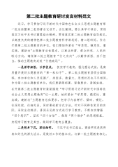 第二批主题教育研讨发言材料范文近日,学习贯彻习近平新时代中国特色社会主义思想主题教育第一批总结暨第二批部署会议召开。会议强调,要认真学习领会、贯彻落实习近平总书记重要指示精神,贯彻落实第二批主题教育指导意见,以高度负责的精神把第二批主题教育科学谋划好、精心组织好。作为开展第二批主题教育的单位,我们要始终紧扣“学思想、强党性、重实践、建新功"主题教育总体要求,以事业所需、群众所愁、人民所盼为方向,确保第二批主题教育“行之有向”,以勤学深悟、实干担当,推动主题教育成效“行稳致远”。一是深学细悟,以学促成。抓实学习教育,强化理论武装,是高质量开展好主题教育的“第一粒扣子”。第二批主题教育层级全面推移...