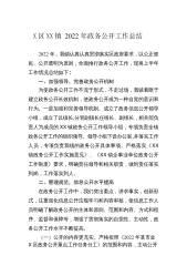 X区XX镇2022年政务公开工作总结2022年,我镇认真认真贯彻落实区政府要求,以公正便民、公开透明为原则,全面推行政务公开工作,现将上半年工作情况总结如下∶一、加强领导,完善政务公开机制为使政务公开工作不流于形式,不走过场,我镇着眼于建立政务公开长效机制,使政务公开成为一种自觉的意识和行为。一是加强和完善领导机制。成立了政务信息公开领导小组,成立了以镇长,分管副镇长任组长、副组长,相关部负责人为成员的XX镇政务公开工作领导小组,专项负责全镇政务公开工作的组织领导。领导小组下设办公室,并落实工作人员,专项负责我镇的政务公开具体事项。严格落实《XX镇政务公开工作实施意见》、《XX镇企事业单位政务...
