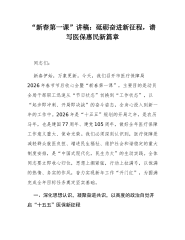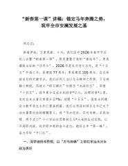 “新春第一课”讲稿:锚定健康优先战略,奋力谱写卫生健康事业高质量发展新篇章同志们:新春的钟声犹在耳畔,喜庆的余韵仍绕心间。今天,我们齐聚一堂,召开市卫生健康委员会2026年春节节后收心会暨“新春第一课”,这既是一次收心归位、调整状态的动员会,更是一次锚定目标、擂鼓出征的部署会。2026年是“十五五”规划开局之年,是农历丙午马年,是新中国成立77周年,也是中国共产党成立105周年。站在新的历史起点,卫生健康事业肩负着更为光荣而艰巨的使命。总书记深刻指出,“人民健康是社会主义现代化的重要标志”。我们必须深刻认识到,卫生健康工作不仅是民生问题,更是关乎国家长治久安和社会文明进步的战略问题。短暂的假期...