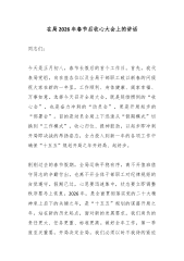 “新春第一课”讲稿:砥砺奋进开新局,谱写健康城市建设新篇章同志们:新春伊始,万象更新。今天我们召开市卫生健康委员会2026年春节节后收心会暨“新春第一课”,既是收心归位、调整状态的动员会,更是明确目标、鼓劲加压的部署会。2026年是“十五五”规划开局之年,是农历生肖马年,是建国77周年,也是建党105周年。站在新的历史起点,我们肩负着推进健康中国建设、增进人民健康福祉的时代重任。习近平总书记深刻指出:“人民健康是社会文明进步的基础,是民族昌盛和国家富强的重要标志。”这一重要论述为我们做好新时代卫生健康工作提供了根本遵循。过去一年,在市委、市政府的坚强领导下,全市卫生健康系统广大干部职工凝心聚力...