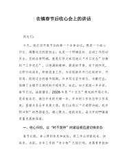 在市住房和城乡建设局2026年春节节后收心会暨“新春第一课”上的讲话同志们:春晖永绽,万象更新。今天是正月初*,我们在这里召开全局2026年春节节后收心会暨“新春第一课”。首先,我代表局党组向大家拜个晚年。今天是收假,更是“收心”;今天是开年,更是“开工”。2026年是丙午马年,是“十五五”规划的开局之年,是中华人民共和国成立77周年,也是我们党建党105周年。在这个极具历史厚重感与时代使命感的年份,住房城乡建设工作肩负着稳增长、惠民生、防风险、促转型的重任。年前,全国住房城乡建设工作会议及省市系列重要会议已擂响战鼓,明确要求以“起步即冲刺”的姿态开启新征程。我们今天这堂课,既是思想动员课,也...