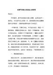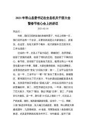 2021年常山县委书记在全县机关干部大会暨春节收心会上的讲话2021-02-18同志们:年前,我们已经把各项任务都布置了,年后上班第一天,我们召开这样一个会议,主要目的就是让大家收收心、抓落实。在这里,先给大家拜个晚年,祝大家猴年生活喜洋洋、工作出成绩!过去的一年,全县上下奋力追赶、艰难前行、改革突破,收获了发展的成果、收获了增长的后劲、也收获了干事的信心。春节前,宣传部广泛征集各方意见,梳理出常山一年来变化最大的十件事,我看,大家也看得很准。作适当调整后,这里我也把这些“变化”介绍给大家:第一,工业平台提升归位。这一年,工业平台“一硬一软”发生了重大变化。新都园区、辉埠新区付出了巨大努力,平...