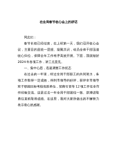 2023收心会的讲话简短发言同志们:新春伊始,万象更新。我代表局班子给大家拜个晚年,祝大家在新的一年里,身体健康、工作顺利、阖家幸福。节后上班第一天召开全体干部会议,基本上已经成为咱们局的惯例。它既是集中归位、调整状态的收心会,又是打气鼓劲开始工作的动员会。经过了春节假期,大家的身心得到了休息、休整,希望大家能以信心百倍、充满活力的状态迅速投入到新年的工作中,抢抓时间,务实创新,扎实工作,为今年各项工作任务开好局、起好步。下面,我讲三点意见。一、收假收心,立即进入工作状态XXX年我们安排了多项重点工作,任务比较繁重,要求大家马上从假期的气氛和状态里走出来,按照已经确定的思路、目标、方案、路径、...