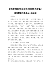 某市税务局纪检组长在全市税务系统警示教育暨案件通报会上的讲话