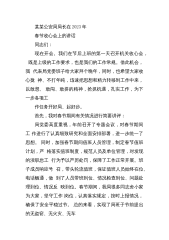 局领导班子在2023年收心会上的讲话同志们:新春伊始,万象更新。我代表局班子给大家拜个晚年,祝大家在新的一年里,身体健康、工作顺利、阖家幸福。节后上班第一天召开全体干部会议,基本上已经成为咱们局的惯例。它既是集中归位、调整状态的收心会,又是打气鼓劲开始工作的动员会。经过了春节假期,大家的身心得到了休息、休整,希望大家能以信心百倍、充满活力的状态迅速投入到新年的工作中,抢抓时间,务实创新,扎实工作,为今年各项工作任务开好局、起好步。下面,我讲3点意见。一、收假收心,立即进入工作状态XXX年我们安排了多项重点工作,任务比较繁重,要求大家马上从假期的气氛和状态里走出来,按照已经确定的思路、目标、方案...