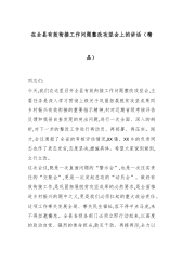 在全县有效衔接工作问题整改攻坚会上的讲话(精品)同志们:今天,我们在这里召开全县有效衔接工作问题整改攻坚会,主要任务是深入学习贯彻上级关于巩固拓展脱贫攻坚成果同乡村振兴有效衔接的重要指示精神,针对近期省级考核评估反馈和我县自查发现的突出问题,进行一次全面、深入的剖析,对下一步的整改工作进行再动员、再部署、再压实。刚才,会议通报了全省的考核评估情况,XX镇、XX乡的负责同志也作了表态发言,态度坚决,措施具体。希望大家说到做到,立行立改。这次会议,既是一次直面问题的“警示会”,也是一次压实责任的“交账会”,更是一次发起总攻的“动员会”。做好有效衔接工作,是巩固拓展脱贫攻坚成果的必然要求,是全面推进...