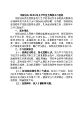 2023年某镇上半年巩固拓展脱贫攻坚成果和乡村振兴有效衔接工作情况汇报2023年是全面贯彻落实党的XX大精神的开局之年,是巩固拓展脱贫攻坚成果同乡村振兴有效衔接的关键之年。XX镇乡村振兴工作的总体思路是,以习近平新时代中国特色社会主义思想为指导,深入学习贯彻党的XX大精神,贯彻落实习近平总书记关于巩固拓展脱贫攻坚成果和乡村振兴有效衔接讲话精神,聚焦“守底线、抓发展、促振兴”,增强脱贫群众和监测对象内生发展动力,牢牢守住不发生规模性返贫的底线,扎实推进乡村发展、乡村建设、乡村治理和精神文明建设,建设宜居宜业和美乡村,推动巩固拓展脱贫攻坚成果上台阶、乡村全面振兴见实效,为全面建设社会主义现代化国家...