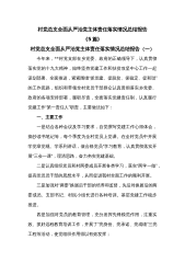村党总支全面从严治党主体责任落实情况总结报告(5篇)村党总支全面从严治党主体责任落实情况总结报告(一)今年来,**村党支部在乡党委、政府的正确领导下,认真贯彻落实党的十九大精神,始终坚持党建工作和扶贫攻坚中心工作一起谋划部署、全面推进,紧紧围绕“抓党建、促脱贫、保稳定、促和谐”的工作思路,组织和带领全村党员干部群众认真贯彻落实乡党委、政府的各项安排部署,履职尽责,全面落实党建责任制,认真履行党建工作“第一责任人”职责,主要做法如下:一、主要工作一是结合各种会议及学习要求,自觉撰写党建工作心得体会,摘抄读书笔记等,每个季度为全村党员上党课。在全村党员中开展学党章党规、学系列讲话,做合格党员”学习...