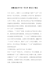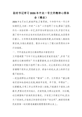 驻村书记学习2026年中央一号文件精神心得体会(精品)2026年2月3日,新春伊始,万象更新。今年的中央一号文件如期而至,为新一年的“三农”工作指明了方向,擘画了蓝图。作为一名驻村第一书记,逐字逐句研读这份文件,字里行间充满了党中央对农业农村农民的深切关怀,倍感振奋,也深感责任重大。文件既有高屋建瓴的战略部署,也有细致入微的政策安排,为我扎根基层、服务乡村注入了强大的思想动力和行动指南。一、守牢底线在常态化精准帮扶中彰显责任文件强调要“守牢不发生规模性返贫致贫底线”,并将“实施常态化精准帮扶”作为重要篇章,这为巩固拓展脱贫攻坚成果衔接乡村振兴指明了核心任务。这让我深刻认识到,脱贫摘帽不是终点,...