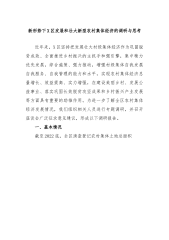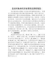 新形势下某区发展和壮大新型农村集体经济的调研与思考近年来,区坚持把发展壮大村级集体经济作为巩固脱贫成效、全面推进乡村振兴的主抓手和强引擎,集中精力、优先发展,综合施策、强力推动,增强村级集体自我发展、自我服务、自我管理的能力和水平,实现农村集体经济总量增长、效益提高、实力增强,在建设美丽乡村、发展公益事业、落实巩固长效脱贫攻坚成果和乡村振兴产业发展等方面具有重要的助推作用。为进一步了解全区农村集体经济发展情况,我们组织相关人员进行专题调研,并召开座谈会广泛征求意见建议,形成以下调研报告。一、基本情况截至2022底,全区清查登记农村集体土地总面积30.0665万亩,其中农用地27.2万亩(耕地1...