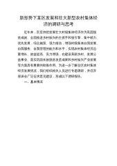 新形势下某区发展和壮大新型农村集体经济的调研与思考调研报告