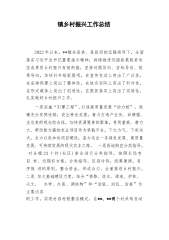 镇乡村振兴工作总结2022年以来,**镇在县委、县政府的坚强领导下,全面落实习近平总书记重要指示精神,持续推进巩固拓展脱贫攻坚成果同乡村振兴有效衔接,坚持问题导向、目标导向、效果导向,加快补齐短板弱项,在宣传发动上突出了广泛性,在安排部署上突出了整体性,在结合实际上突出了针对性,在形式载体上突出了创造性,在狠抓落实上突出了实效性,扎实做好乡村振兴工作。一是实施“引擎工程”,打造高质量发展“动力核”。我镇充分发挥优势,突出特色发展,着力打造产业优、品牌强、生态美的观光综合体,加快资源要素的聚集,将质量高、潜力大、带动能力强的农业项目作为承载平台,下大力气、下实功夫,全力以赴加快项目建设,奋力走出...