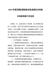 X某市文旅体局驻村工作队2022年关于乡村振兴工作总结今年以来,天静宫街道徐广X区驻村工作队在县委组织部、XX乡村振兴局关怀指导下,在街道党工委领导下,紧密团结徐广X区“两委”,紧紧围绕选派驻村四项基本职责,赓续奋斗,积极作为,把“讲政治、重团结、谋发展、强自身”的工作要求迅速融入到巩固拓展脱贫攻坚成果和全面推XX乡村振兴的具体工作当中,取得了一定成效,现将2022年工作情况汇报如下:一、X区基本情况2022年徐广X区共有脱贫户X户X人,监测户X户X人。七类重点人群共X户X人,低保户X户X人;残疾人X户X人;特困五保户X户X人。目前,X区各项衔接政策和项目得到全面落实,脱贫人口全部实现“两不愁...