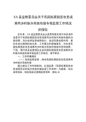 XX县监察委员会关于巩固拓展脱贫攻坚成果同乡村振兴有效衔接专项监督工作情况的报告近年来,XX县监察委员会认真贯彻落实党中央及省市县委关于巩固拓展脱贫攻坚成果同乡村振兴有效衔接的决策部署,充分发挥监督保障执行、促进完善发展作用,紧扣全县过渡期目标任务、工作重点和措施落实,为全县巩固拓展脱贫攻坚成果同乡村振兴有效衔接提供坚强保障。下面,我代表县监委报告全县巩固拓展脱贫攻坚成果同乡村振兴有效衔接专项监督工作情况,请予审议:一、工作开展情况(一)加强监察监督,推动巩固拓展脱贫攻坚成果同乡村振兴有效衔接建立健全工作衔接机制。以省监委《巩固拓展脱贫攻坚成果同乡村振兴有效衔接监督工作清单》为遵循,结合县情实...