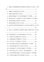 1.2022年巩固拓展脱贫攻坚成果及乡村振兴工作总结(文旅体).............................................................................................32.2022年市委宣传部工作总结.......................................53.2022年物业管理工作总结.............................................94.XXX茶场2022年工作总结暨2023年工作思路..........105.XX公积金分中心2022年工作总结及...