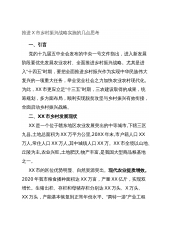推进X市乡村振兴战略实施的几点思考一、引言党的十九届五中全会发布的中央一号文件指出,进入新发展阶段要优先发展农业农村、全面推进乡村振兴战略。尤其是进入“十四五”时期,要把全面推进乡村振兴作为实现中华民族伟大复兴的一项重大任务,举全党全社会之力加快农业农村现代化。为此,XX市更应立足“十三五”时期,三农建设取得的成果,统筹规划,多方面布局,顺利实现脱贫攻坚与乡村振兴有效衔接,全面启动乡村振兴战略。二、XX市乡村发展现状XX是一个位于赣东地区农业发展突出的中等城市,下辖三区九县,土地总面积为XX万平方公里,20XX年末,市户籍人口XX万人,常住人口XX万人,其中城镇人口XX万。XX市全境以山地、丘...