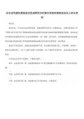 在全县巩固拓展脱贫攻坚成果同乡村振兴有效衔接推进会议上的主持词同志们:现在开会。今天这次会议是经县委、县政府研究召开的一次重要会议,主要任务是深入学习贯彻XJP总书记关于巩固拓展脱贫攻坚成果同乡村振兴有效衔接的重要指示精神,落实全省、全市脱贫攻坚成果后评估工作会议部署要求,统一思想,提升站位,对巩固拓展脱贫攻坚成果同乡村振兴有效衔接工作和迎接巩固脱贫成果后评估进行全面安排,加压推进。参加今天会议的有:在家的县处级领导干部;各乡镇街道党政正职、分管副职;县直各一级单位主要负责人;XX个主要行业部门分管副职;XX个脱贫村支部书记;县乡村振兴局全体成员。今天的会议共有三项议程,下面依次进行:首先,会...