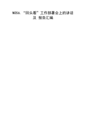 NO56.“回头看”工作部署会上的讲话及报告汇编目录在文山市迎接中央环境保护督察“回头看”专题工作部署会议上的讲话...................................................2在全省脱贫攻坚“回头看”工作动员会议上的讲话.....................................................................................12在大气污染防治暨中央环保督察回头看会议上的讲话..............................................................