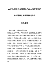XX市住房公积金管理中心在全市市直部门单位清廉机关建设推进会上汇报发言