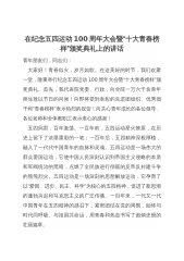 在纪念五四运动100周年大会暨“十大青春榜样”颁奖典礼上的讲话