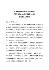 在纪念五四运动100周年大会暨“十大青春榜样”颁奖典礼上的讲话青年朋友们,同志们:大家好!青春似火,岁月如歌。在这美好的时节,我们欢聚一堂,隆重举行纪念五四运动100周年大会暨“十大青春榜样”颁奖典礼。首先,我代表院党委、行政,向全院一万六千名青年师生致以节日的问候!向即将受到表彰的先进团组织、优秀团干和“青春榜样”表示热烈的祝贺!向关心青年成长的各位领导、各位老师和全体教职工表示衷心的感谢!五四风雷,百年激荡。一百年前,五四运动星火燎原,在历史上留下了浓墨重彩的一笔;一百年后,五四精神深根厚植,融入了一代代中国青年的血脉和灵魂。五四运动是一场伟大的群众爱国运动,它使中国人民深刻认识到帝国主义...