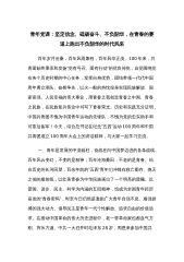 青年党课:坚定信念、砥砺奋斗、不负韶华,在青春的赛道上跑出不负韶华的时代风采百年岁月沧桑,百年风雨兼程,百年风华正茂。100年来,共青团始终秉承和发扬“党有号召、团有行动”的优良传统,自觉围绕党在各个历史时期的中心任务,发挥自身优势,团结带领一代代中国青年勇立潮头、奋楫争先,以火一般的热忱投身实现民族解放、国家富强、人民幸福的伟大事业,用青春之我创造青春之中国、青春之民族,在民族复兴伟业中书写了青春荣光。历史和实践充分证明,中国共青团不愧为中国青年运动的先锋队,不愧为党的忠实助手和可靠后备军!今天,结合总书记在纪念“五四”运动100周年和中国共青团成立100周年大会上的讲话精神,与大家一起学习...