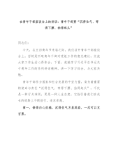 在青年干部座谈会上的讲话:青年干部要“沉得住气、弯得下腰、抬得起头” 同志们:今天,在五四青年节来临之际,我们召开青年干部座谈会上,目的是听取青年干部对党组工作的意见建议,交流大家工作生活心得体会,下面,我就学习习近平总书记关于青年工作的系列讲话精神,讲一下学习体会,与大家共勉。青年干部作为国家和社会发展的中坚力量,肩负着重要的使命与责任“沉得住气、弯得下腰、抬得起头”,不仅是一种行为准则,更是一种人生态度,它指引着我们在成长的道路上不断前行,追求卓越。第一,修得内心沉稳,沉得住气方显英姿,一忍可以支百勇。人生在世,全活一口气,无论是志气、勇气、才气亦或是傲气,总之要沉住。这是一个人事业的开...