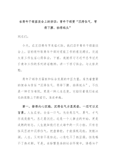在青年干部座谈会上的讲话:青年干部要“沉得住气、弯得下腰、抬得起头”(1816字)同志们:今天,在五四青年节来临之际,我们召开青年干部座谈会上,目的是听取青年干部对党组工作的意见建议,交流大家工作生活心得体会,下面,我就学习习近平总书记关于青年工作的系列讲话精神,讲一下学习体会,与大家共勉。青年干部作为国家和社会发展的中坚力量,肩负着重要的使命与责任“沉得住气、弯得下腰、抬得起头”,不仅是一种行为准则,更是一种人生态度,它指引着我们在成长的道路上不断前行,追求卓越。第一,修得内心沉稳,沉得住气方显英姿,一忍可以支百勇。人生在世,全活一口气,无论是志气、勇气、才气亦或是傲气,总之要沉住。这是一个...