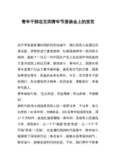 在省人大常委会机关年轻干部座谈会上的讲话——年轻干部座谈会讲话刚才我们人大机关的九位年轻同志分别作了交流发言,谈认识、谈感受、谈工作、谈打算,有的还提出建议,听了以后非常高兴,很受鼓舞。大家的发言,让我看到了人大机关年轻同志在学习和工作上付出的努力,看到了人大机关年轻干部积极向上的精神面貌,看到了人大事业后继有人、不断发展的希望。省级机关工委常务副书记XX同志,团省委副书记、省青联主席XX同志今天专门来参加我们这个活动,体现了省级机关工委和团省委对人大机关党的建设以及青年工作的重视、关心和支持。刚才两位书记讲了很好的意见,大家要用心体会。XX秘书长、XX书记前段时间找到我,说五四青年节之前要搞...