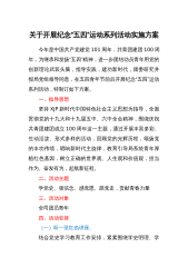 关于开展庆祝“五一”劳动节 迎接“五四”青年节系列主题活动的指导方案