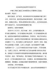 以生命奔赴使命用平凡筑造不凡(中建三局第三建设工程有限责任公司董事长王延波)各位领导,同志们:我叫王延波,共产党员,来自有着68年红色基因的中建三局三公司。2020年初,面对突如其来的新冠疫情,我们听党指挥,冲锋在前,把建设火神山、雷神山医院的任务扛在肩上,以生命奔赴使命,用平凡筑造不凡,为抗击疫情贡献建筑力量。挺身而出,彰显中国精神。2020年1月23日,武汉“封城”。同日,公司接到紧急任务,作为核心参建单位,10天内建成火神山医院、12天内建成雷神山医院。这是党在危急时刻交办的重要使命,关系武汉、湖北乃至全国人民的生命安全,必须争分夺秒高质量完成!我们连夜发出紧急动员令。正值腊月二十九,绝...