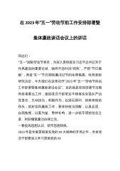 在2023年“五一”劳动节前工作安排部署暨集体廉政谈话会议上的讲话