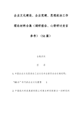 (51篇)企业文化建设、企业党建、思想政治工作理论材料合集(调研报告、心得研讨发言参考)