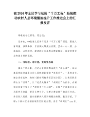 在2024年全区学习运用“千万工程”经验推动农村人居环境整治提升工作推进会上的汇报发言