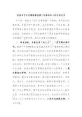 在党建引领基层治理工作会议上的交流发言:突出“三个有效”,以乡村治理成效推进乡村振兴近年来,我县深入学习贯彻习近平总书记关于党建引领基层治理的重要论述和指示批示精神,深入贯彻新时代党的组织路线和中央农村工作会议精神,锚定“国家乡村振兴示范县”创建目标,强化党建引领乡村系统治理,健全网格化治理体系,拓展精细化服务路径,完善信息化治理机制,有效联系服务凝聚群众,以有形有态乡村治理成效,推进乡村全面振兴。一、“联网建格”完善有效联系群众网格化治理体系。一是强化立体联动。全面推行县级领导联镇联村、镇班子包村联户、村“两委”班子全域入户走访制度,梳理县镇村三级班子联村抓党建促乡村振兴责任清单39条,构建...