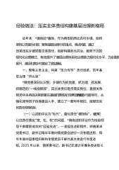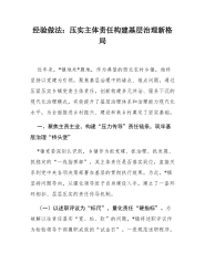 组工信息:XX镇压实主体责任构建基层治理新格局近年来,XX镇地处XX腹地,作为典型的西北农村乡镇,始终坚持以党建为引领,聚焦基层治理中的堵点、难点问题,通过压紧压实乡镇党委主体责任,创新构建多元共治、服务下沉的现代化治理模式,有效提升了基层治理体系和治理能力现代化水平,为全面推进乡村振兴、建设和美乡村奠定了坚实基础。一、聚焦主责主业,构建“压力传导”责任链条,筑牢基层治理“桥头堡”XX镇党委深刻认识到,乡镇作为抓党建、抓治理、抓发“”展、抓稳定的一线指挥部,其主体责任是否落实到位,直接关系到党中央各项决策部署在基层的贯彻执行效果。为此,XX镇坚持问题导向,从强化领导班子自身建设入手,建立了一套...