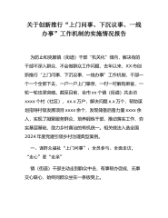 关于创新推行“上门问事、下沉议事、一线办事”工作机制的实施情况报告