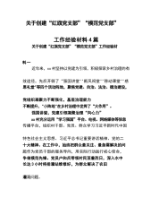 关于创建“红旗党支部”“模范党支部”工作经验材料6篇篇1近年来,xx村坚持以党建为引领,积极探索乡村治理的有效途径,先后开辟了”强国讲堂""新风祠堂”"移动课堂""感恩礼堂"等四个活动阵地,聚焦党建、自治、法治、德治建设,党组织凝聚力不断强化,基层治理能力不断提升,"小阵地"在乡村治理中发挥了“大作用”。强国讲堂,党建引领凝聚治理“向心力”xx村充分运用“学习强国”平台、电视、网络媒体等信息传播平台,组织村干部、党员、群众学习习近平新时代中国特色社会主义思想、习近平总书记重要讲话精神、党的二十大精神。在工作中,始终把群众最关注、最急需解决的问题作为党员干部的服务导向,用实际行动践行初心使命,争...