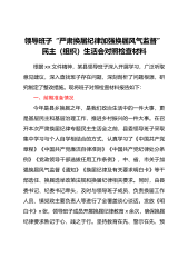 根据xx文件精神,某县领导班子深入开展学习,广泛听取意见建议,深入查找班子存在问题,深刻剖析了问题根源,研究制定了整改措施。现将班子对照检查材料报告如下:一、前期准备情况今年是县乡换届之年,是我们政治生活中的一件大事,更是基层民主和基层治理工作,推进乡村振兴的一件大事。在召开本次严肃换届纪律专题民主生活会之前,县委领导班子采取集中学习与个人自学相结合的方式,认真学习了《中国共产党章程》《中国共产党廉洁自律准则》《中国共产党纪律处分条例》《党政领导干部选拔任用工作条例》,中、省、市关于加强换届风气监督《通知》《换届纪律及有关要求明白卡》等干部选任、换届选举政策法规和换届纪律相关要求。同时,由县委...