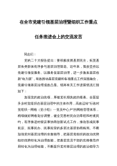 在全市组织工作会议暨抓党建促乡村振兴工作推进会上的汇报发言尊敬的各位领导,同志们:全市组织工作会议对抓党建促乡村振兴作出安排部署。景区将认真贯彻落实会议精神,深入开展基层党建“书记领航”行动,充分发挥基层党组织战斗堡垒作用,持续发展壮大村级集体经济,坚持党建引领乡村治理,推动乡村振兴与旅游发展同频共振。根据会议安排,现将有关工作进展情况汇报如下:抓基层、强基础、固基本。实现乡村振兴,关键在党。强化能力建设。以主题教育为契机,认真落实理论学习、干事创业、检视整改等要求,以学铸魂、以学增智、以学正风、以学促干。切实抓好村党组织书记集中培训,全面提高推动乡村振兴的能力。定期开展村书记抓党建促乡村振兴...