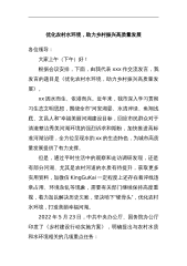 在全县乡村建设暨农村生活垃圾治理工作(视频)会议上的讲话同志们:今天召开全县乡村建设暨农村生活垃圾治理工作(视频)会议,主要任务是全面落实中央和全省关于乡村建设和农村生活垃圾治理工作的部署安排,以治理“脏、乱、差、散”为突破口,持续改善农村人居环境,全力加快乡村建设步伐,努力让农民就地过上现代文明生活。刚才,书面传达了全省乡村建设提质推进会暨生活垃圾治理现场会精神,X副县长通报了乡村建设和生活垃圾治理工作开展情况,并就下一阶段工作进行了具体安排,思路清晰、任务具体、目标明确,我完全同意。大家要结合实际,认真抓好贯彻落实。昨天,X副省长一行以“四不两直”方式先后深入X、X,督导检查农村居住条件改...