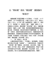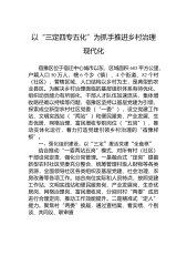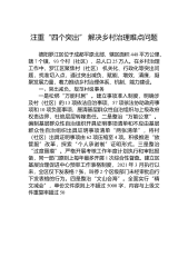 镇落实乡村治理体系建设工作报告*年,*镇认真落实上级关于乡村治理体系建设试点工作的部署要求,以党建为引领,从当前农村乡村治理薄弱环节入手,以治理体系和治理能力建设为主攻方向,建立健全党组织领导的自治、法治、德治相结合的乡村治理体系,“三治合一”共建乡村善治格局逐步形成,农民群众的获得感、幸福感、安全感大幅提升,为乡村振兴奠定了坚实基础。一、主要成效(一)坚持党建引领,乡村治理合力凝聚紧密1.夯实村级党建基础。一是严格落实“三会一课”制度。各支部严格要求支部党员参加党员大会、党小组会和党课学习,组织党员认真学习习近平总书记考察安徽重要讲话指示精神、学习《习近平谈治国理政》第三卷,从而不断提高党员...